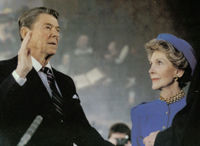 Aanvankelijk was Ronald Reagan lid van de Democratische Partij. In 1962 werd hij lid van de Rupublikeinse Partij. In 1966 werd hij gouverneur van Californië. Hij oefende deze functie acht jaar uit. Nadat hij reeds in 1968 en 1976 een gooi had gedaan naar het hoogste Amerikaanse ambt, versloeg hij in 1980 Jimmy Carter.